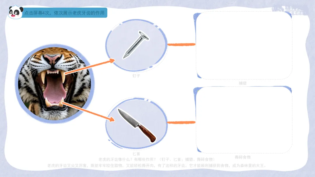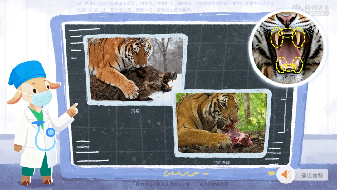 ——下面有请山羊医生来为大家介绍一下老虎牙齿的作用!