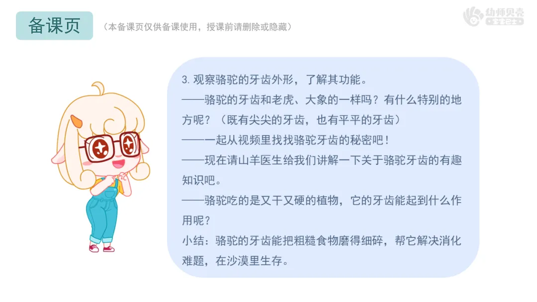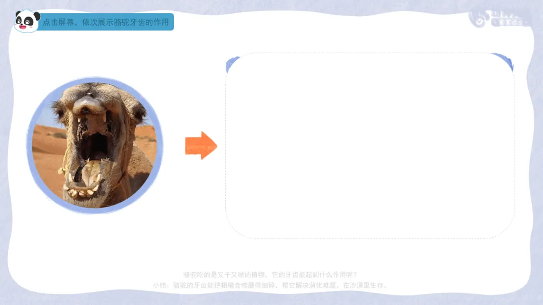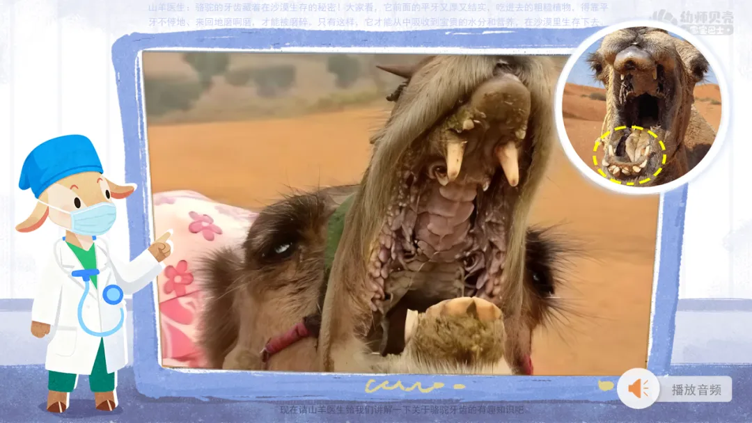 ——现在请山羊医生给我们讲解一下关于骆驼牙齿的有趣知识吧。