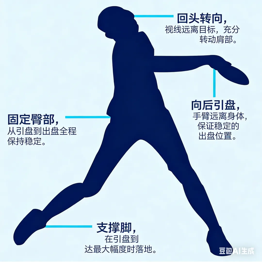 | 🔹技能:掌握反手掷盘三步技术(引盘 - 转体 - 随挥) |
