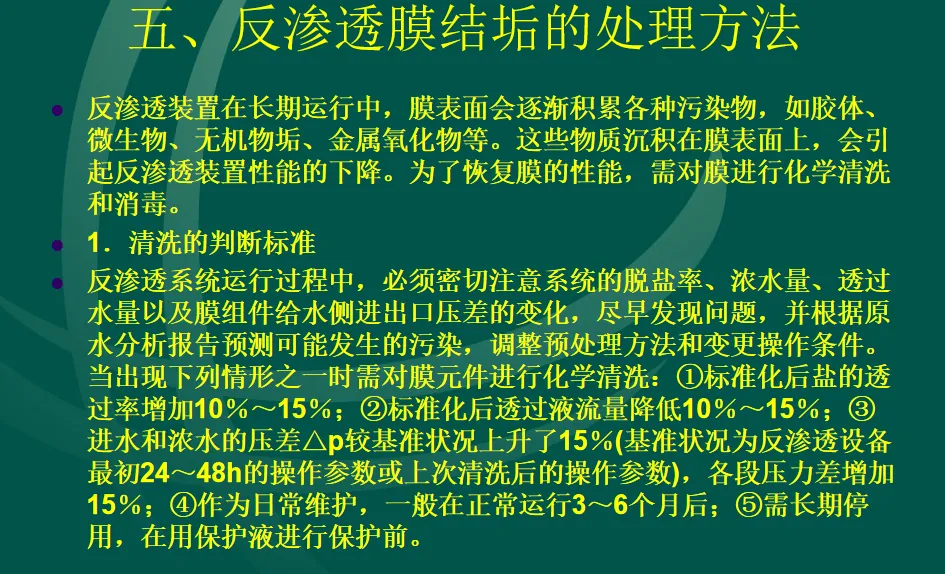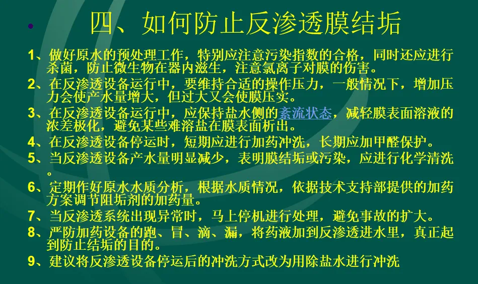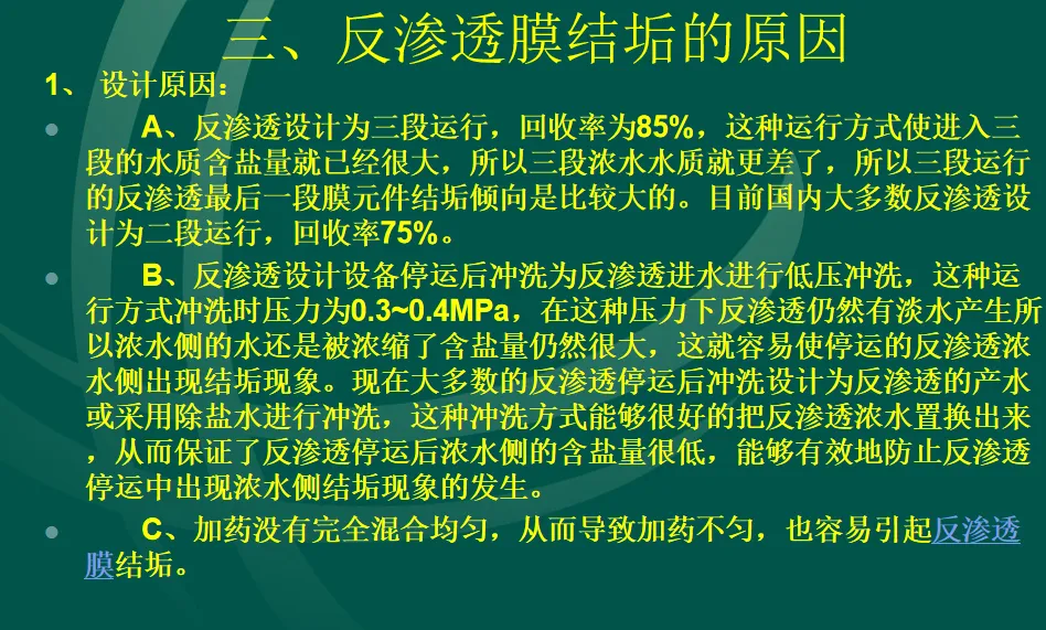 >反渗透膜结垢的原因和处理方法 培训课件