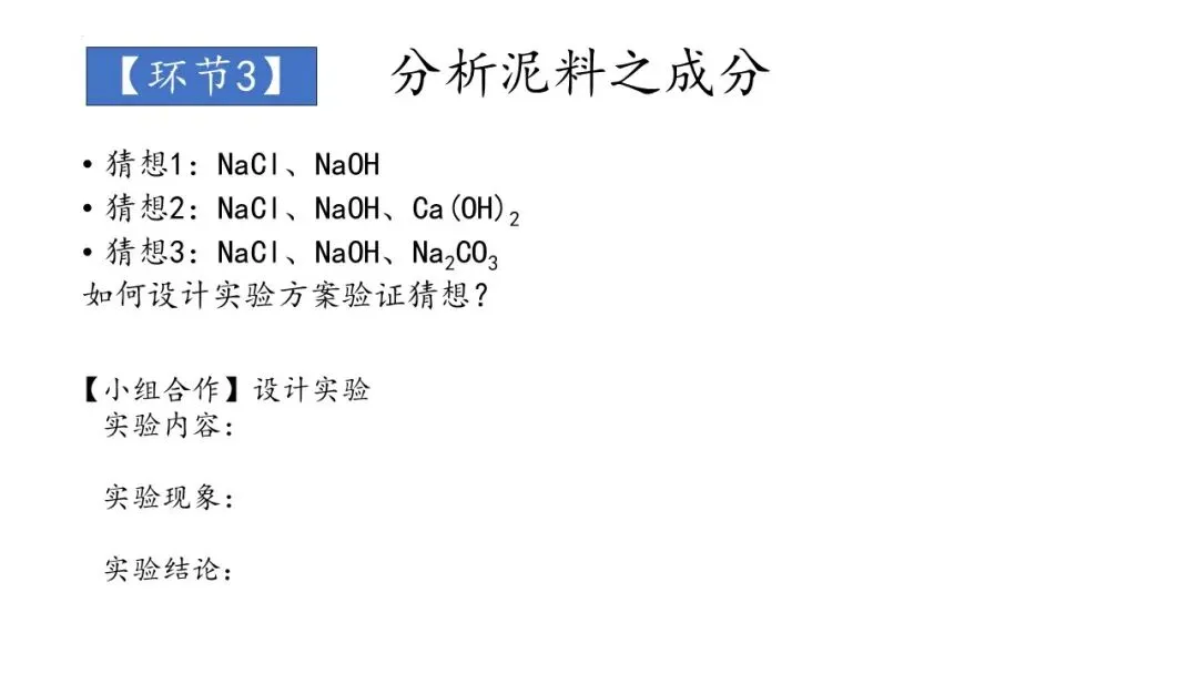 - 讨论回答:泥料有腐蚀性;密封防止 NaOH 与 CO₂反应变质。