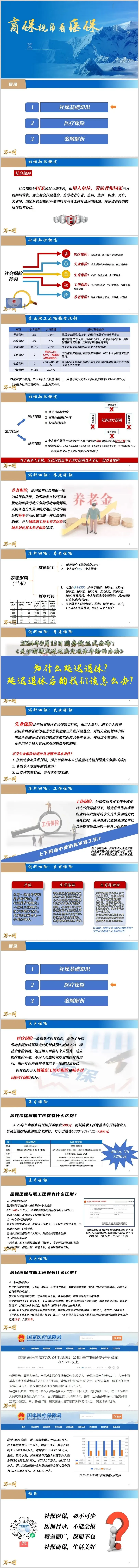 养老保险的核心是“多缴多得、长缴多得”。城镇职工养老保险单位缴费16%进入统筹账户,个人缴费8%计入个人账户;灵活就业人员则需承担20%(12%统筹+8%个人账户)。2025年起实施的渐进式延迟退休政策(男性每4个月延迟1个月至63岁,女职工分阶段延迟至55岁),本质是应对人口老龄化导致的养老金支付压力。以某市为例,职工退休后养老金计算公式为:个人账户部分(退休时账户积累额÷计发月数)+统筹部分(当地上年社平工资+本人指数化月均缴费工资)÷2×缴费年限×1%。这意味着,缴费年限每增加1年,统筹部分可增加约1%的社平工资基数。