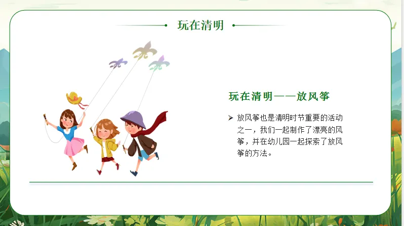 2、使幼儿了解清明节的来历;感受清明节与其它节日在气氛上有何不同。