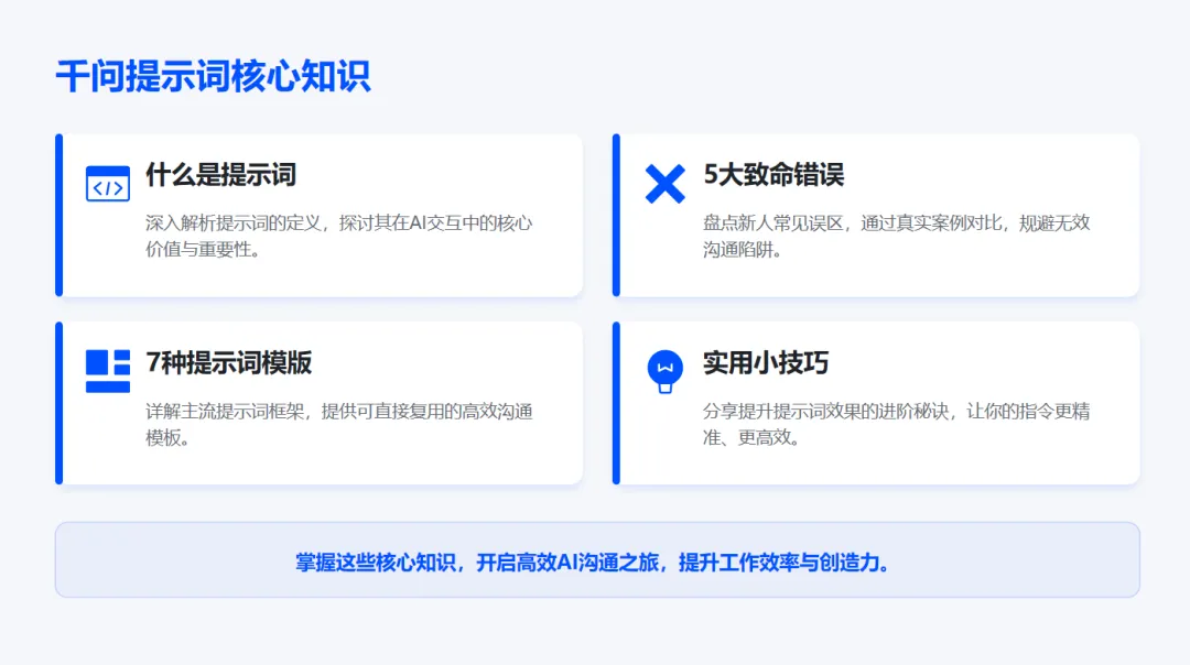 💡 记住: 掌握这些核心知识,开启高效AI沟通之旅,提升工作效率与创造力!