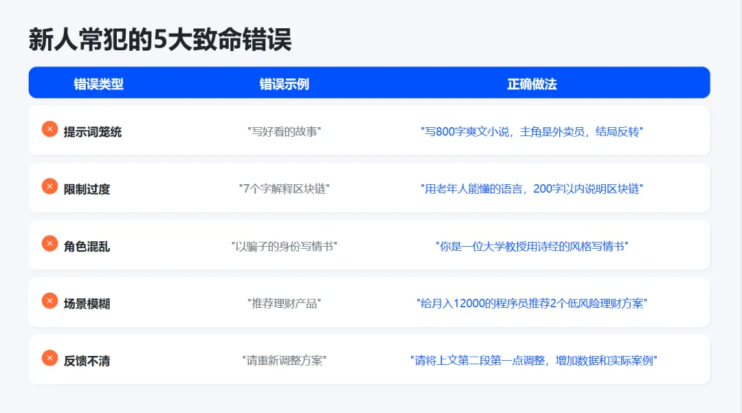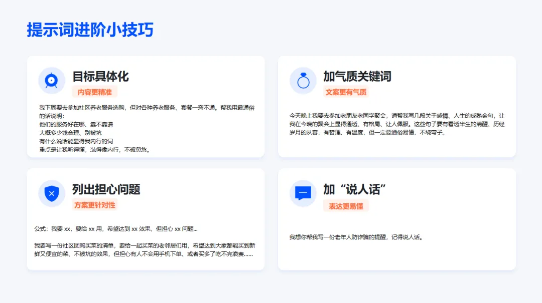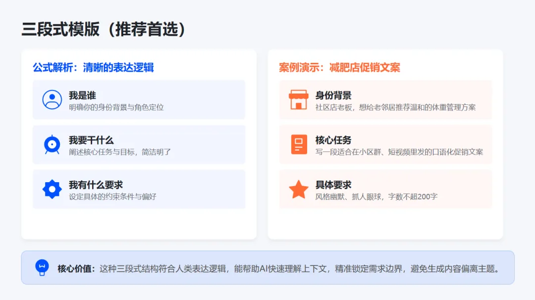 像给实习生下达任务一样:明确目标、提供背景、设定规则、给出示例