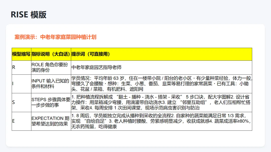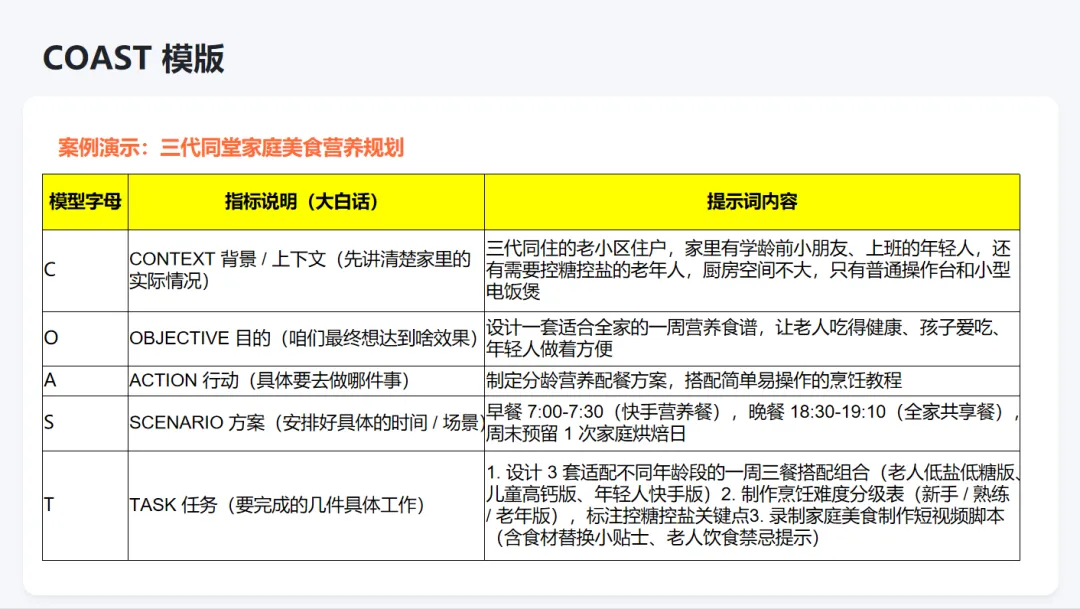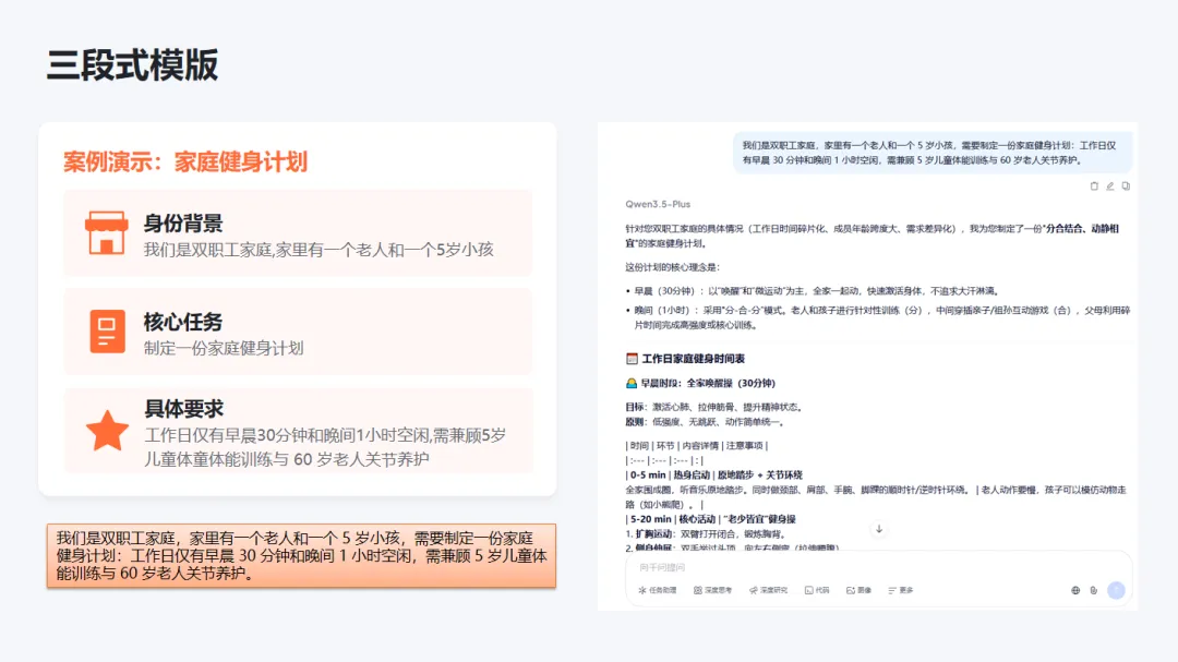 任务: 请用课堂所学的「三段模板」设计一个生活场景提示词