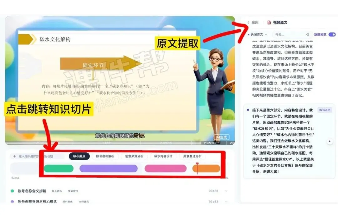 一键生成视频原文、思维导图、练习题库,告别繁琐整理,聚焦教学设计核心。