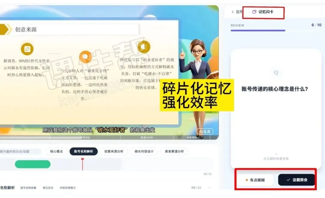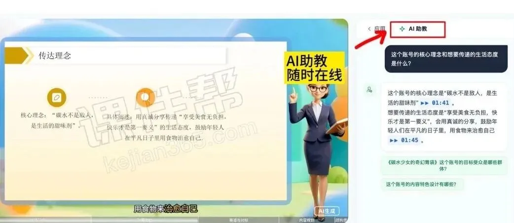 专属 “超级课代表” 全天候在线,不仅能精准解答疑问,更能提供带原始视频时间戳链接的回复 —— 点击链接即可直接跳回视频对应出处,答案有据可依,杜绝模糊回应。还会主动引导深度追问、解析专业术语,把单向的视频观看升级为双向智能互动,解决学习中 “不懂没处问、问了不精准” 的痛点。