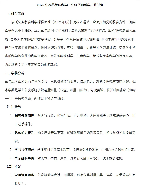 2026春新版大象版科学二年级下册全册教案【大单元教学设计】+分层作业+教材解读【可下载打印】