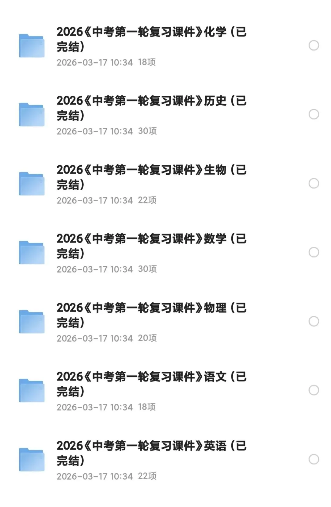 欢迎大家,这里是多多资料库 |小初高,今天要给大家带来的是2026版《中考一轮复习课件》版精品试题分类、中考复习必备(语文/数学/英语/物理/化学/地理/生物/历史/道法),电子版,文末免费领取!