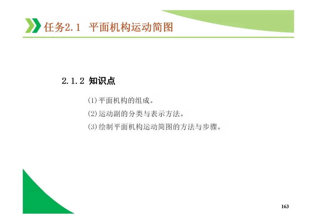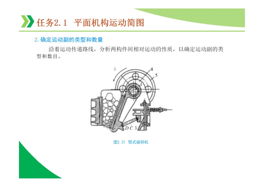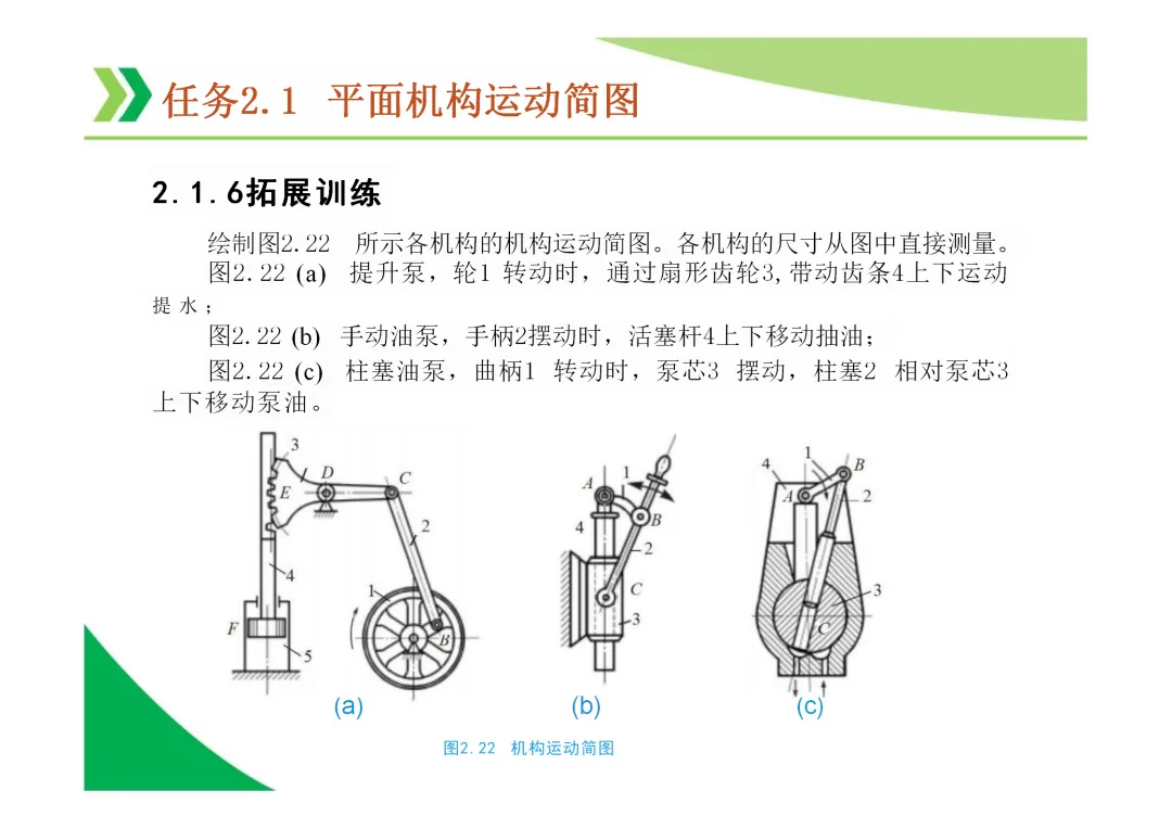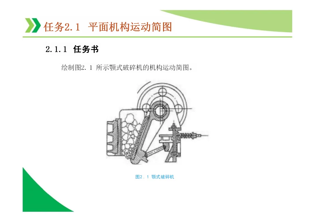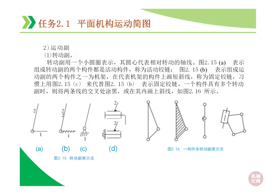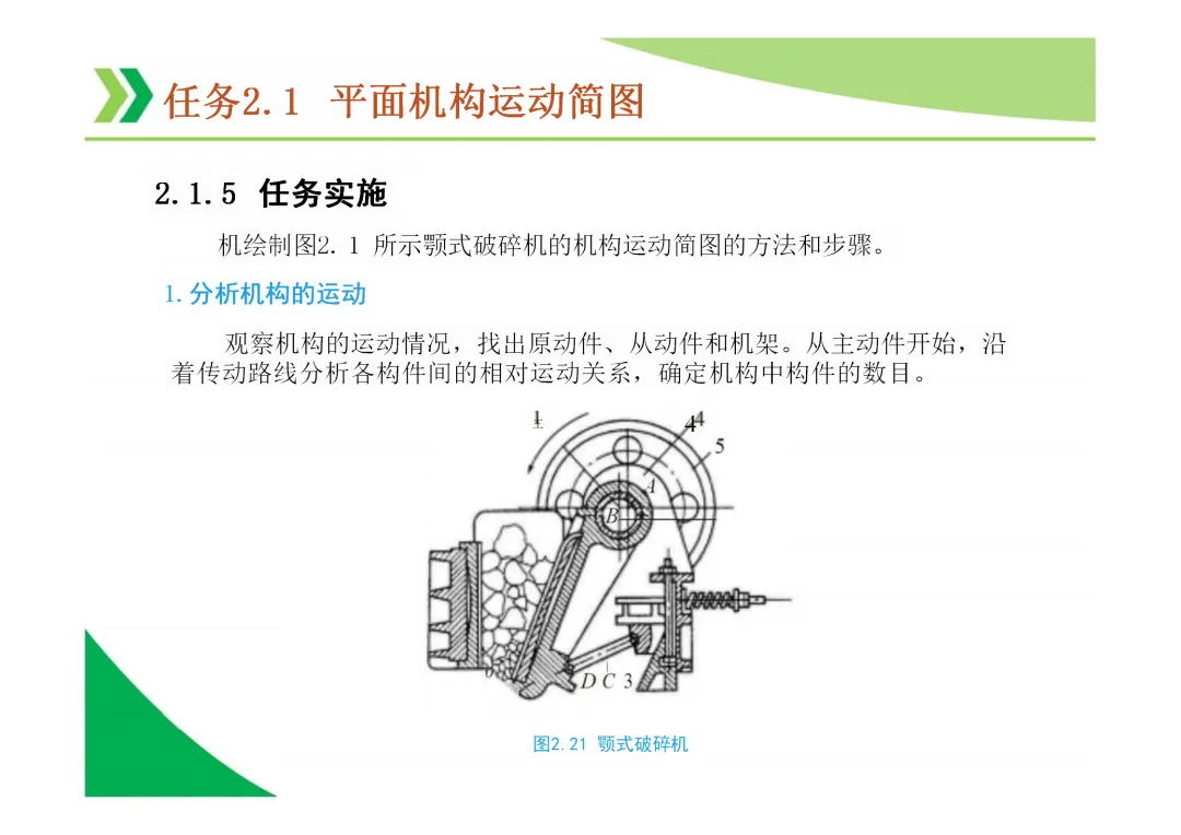机构运动简图:用简单线条和符号表示机构各构件间运动关系的图形,是分析机构的基础。