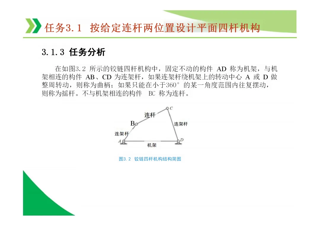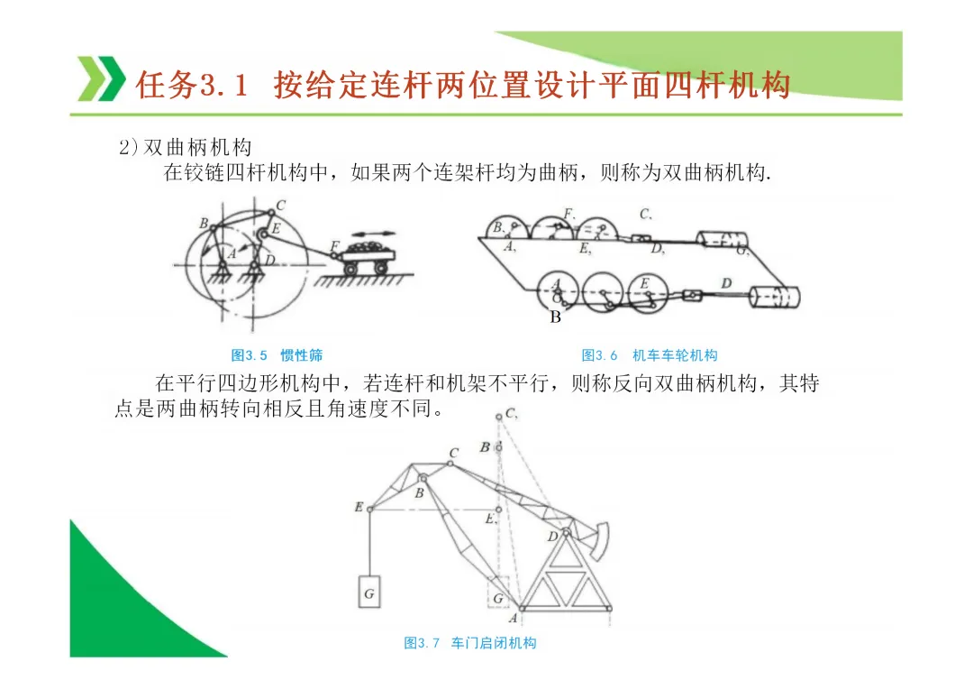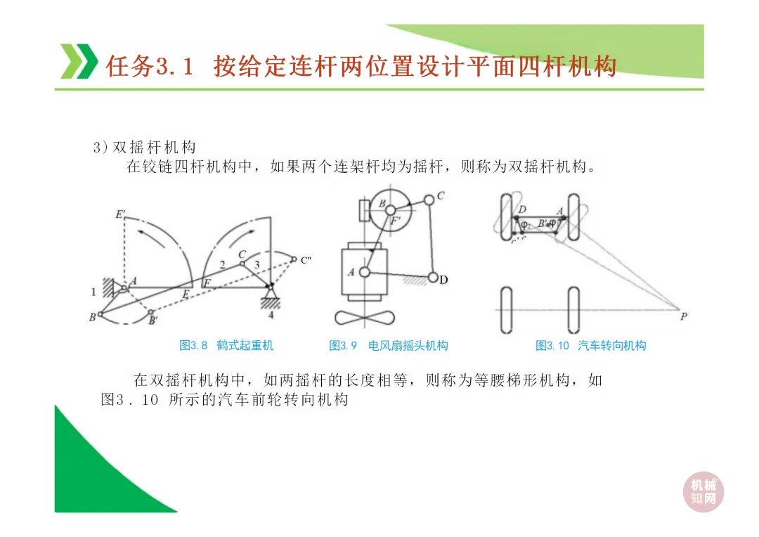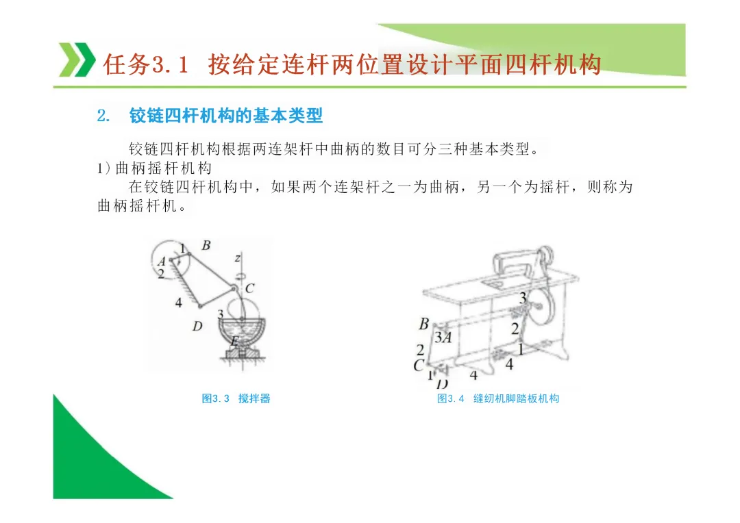 铰链四杆机构三种基本类型:曲柄摇杆机构、双曲柄机构、双摇杆机构。