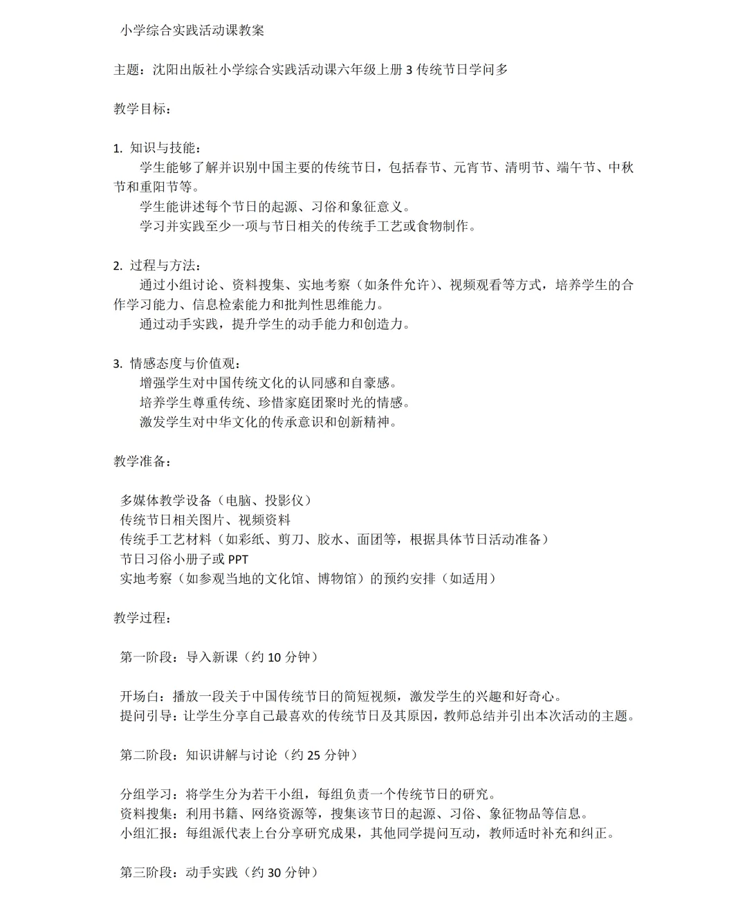 沈阳版《综合实践活动》六年级下册