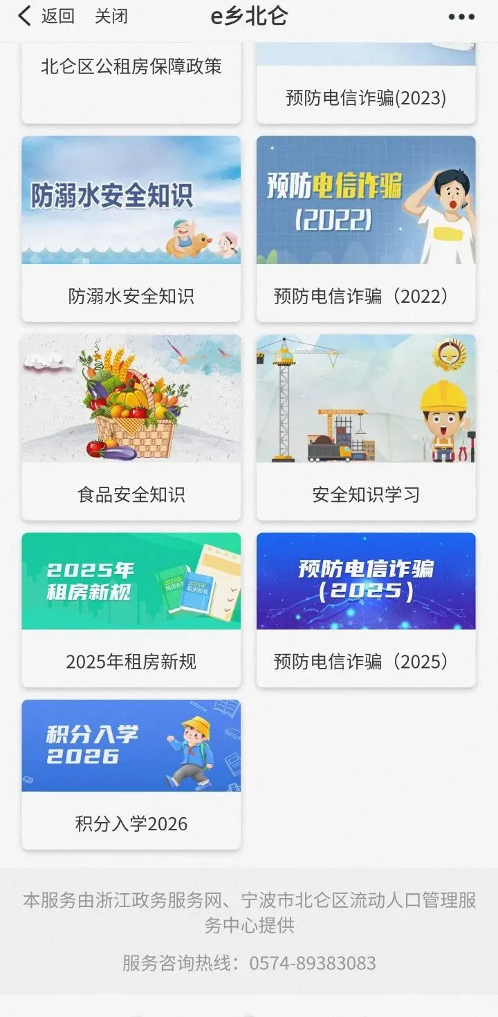 “浙里办APP”—e乡北仑站积分学习栏目相关课件将于3月31日下架,各位积分申请人可抓紧时间前往“浙里办”APP学习。目前,课件《积分入学2026》《预防电信诈骗(2025)》《2025年租房新规》均已上架。用户通过相关内容的学习并完成答题,既可以获取实用的知识,学习合格后还可以获得相应积分。
