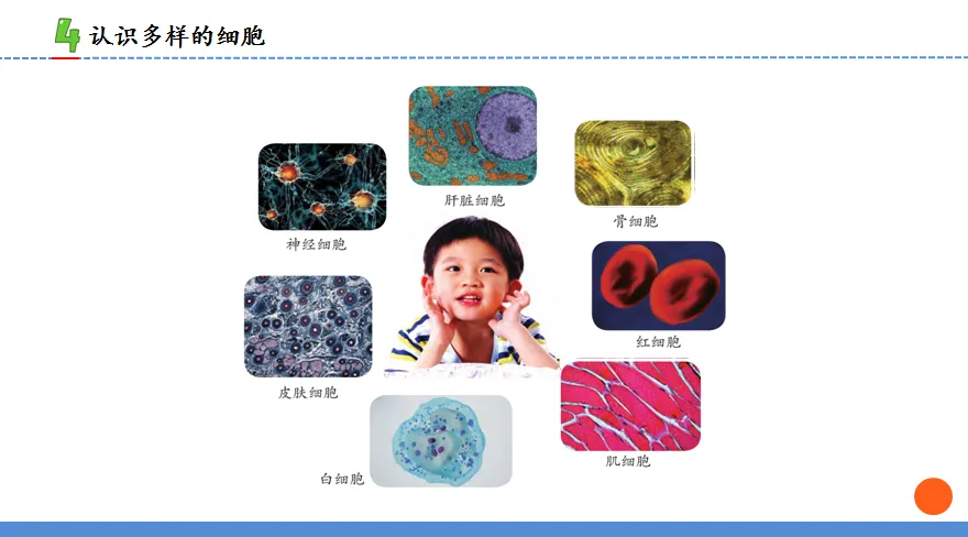 第二个部分,观察人体细胞图片,引导学生发现细胞有多种形状,认识到细胞的多样性。