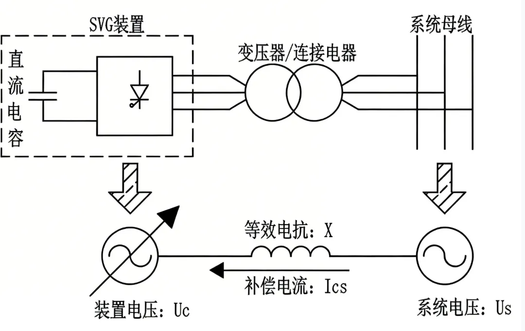 SVG是一种基于全控型电力电子器件(如IGBT)的并联型无功补偿装置。它通过实时检测电网的无功需求,快速生成大小相等、相位相反的无功电流,实现动态无功补偿。