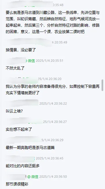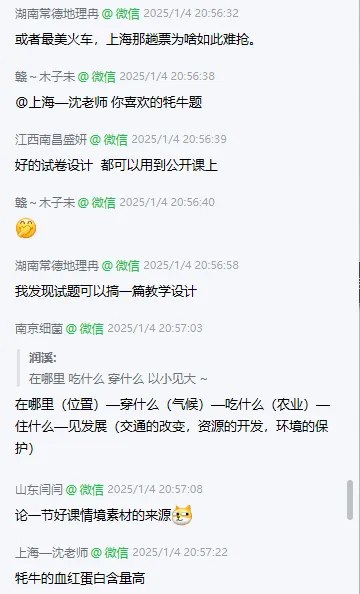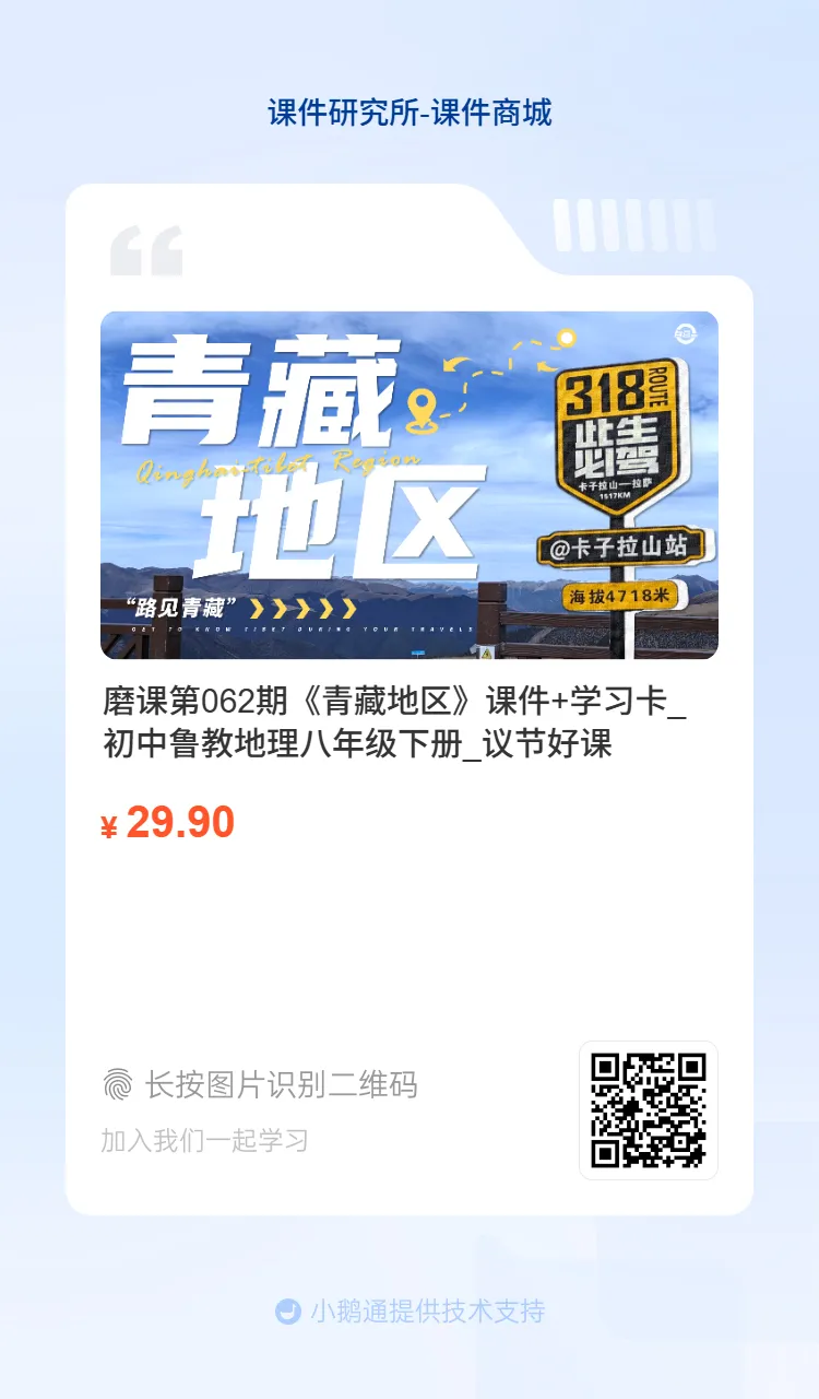 今天分享的是鲁教版八下地理大单元设计课件《青藏地区》。老师要去上公开课,但原本的课件内容量大,且更适合常规课,有些地方讲得不是很顺,所以来群里磨课。大家为了让老师上好这节课,讨论得非常激烈,从情境设计到学生活动,再到PPT页面的优化,全方位给出了意见。
