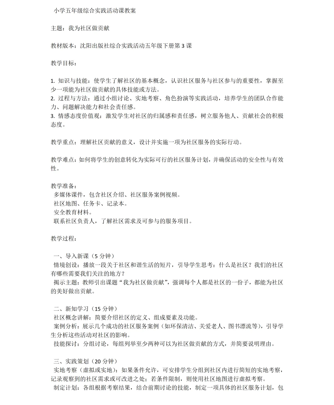 当前位置:首页>教案>沈阳版《综合实践活动》五年级下册教案+课件
