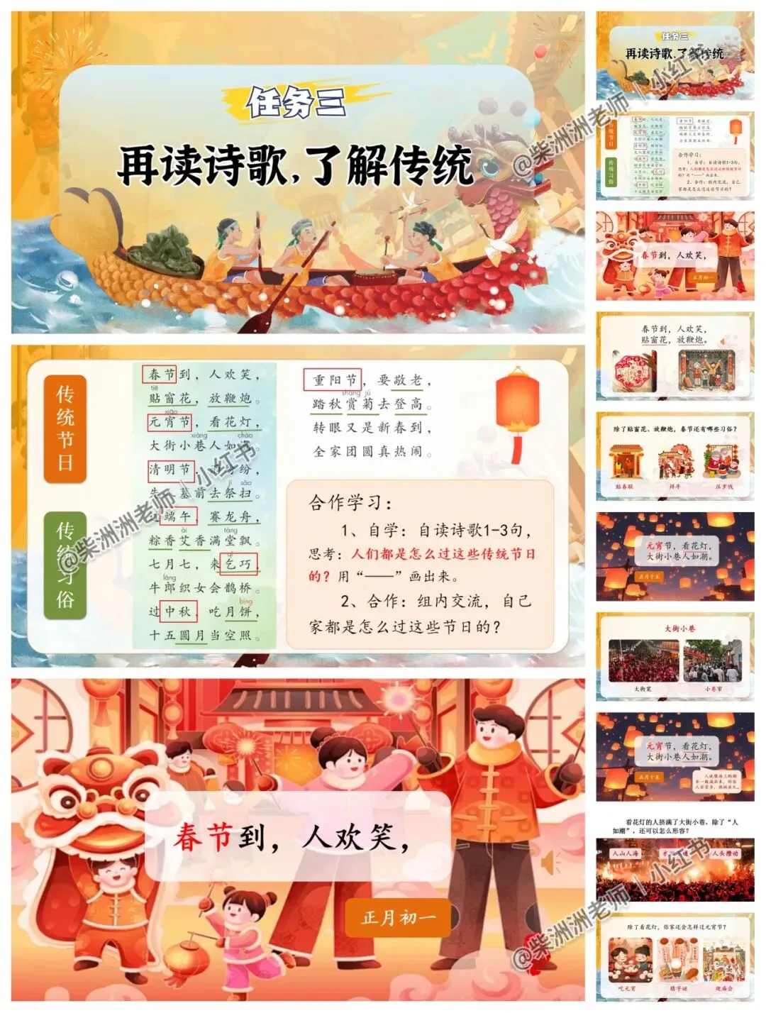 AI赋能《传统节日》课件!配套有板书!