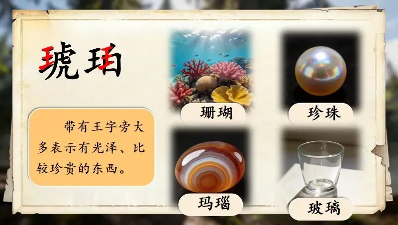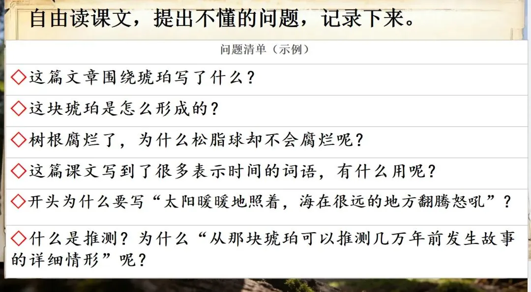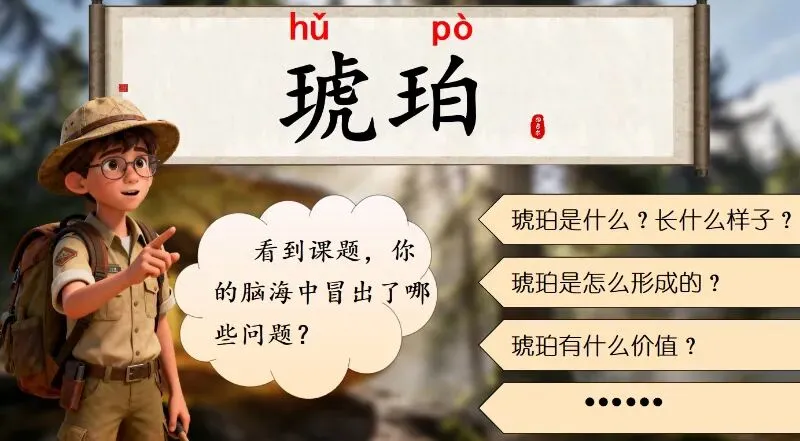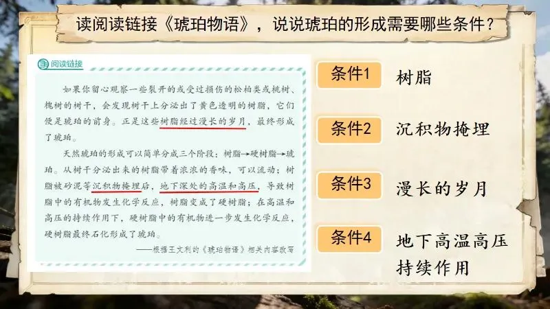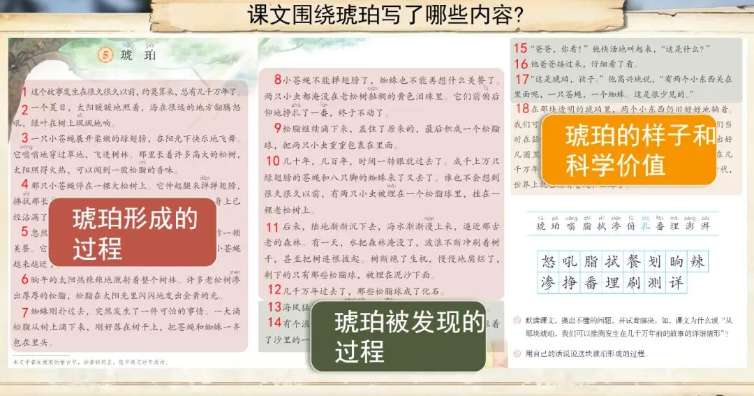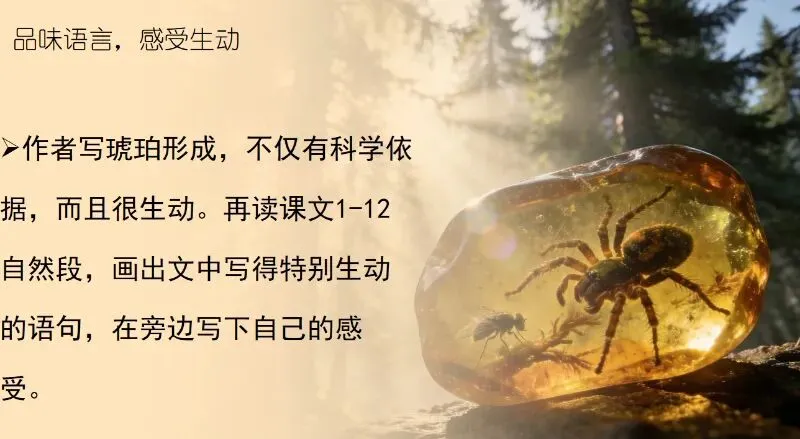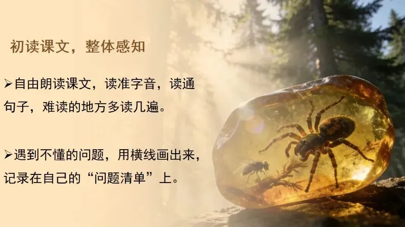 今晚放弃了锻炼,花四个小时完成了第5课的备课,以下分享《琥珀》部分课件: