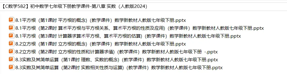 今天小新给同学们整理了初中数学——七年级下册教学课件-第八章 实数(人教版2024)。家有初中生的家长可以给孩子打印一份。