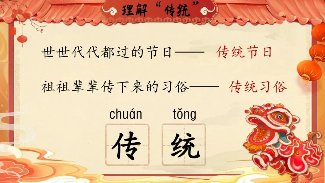 师:春节、清明节、端午节……这些世世代代都过的节日就叫——