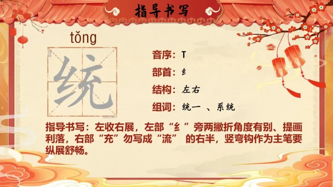 统:左收右展,左部“纟”旁两撇折角度有别、提画利落,右部“充”勿写成“流” 的右半,竖弯钩作为主笔要纵展舒畅。