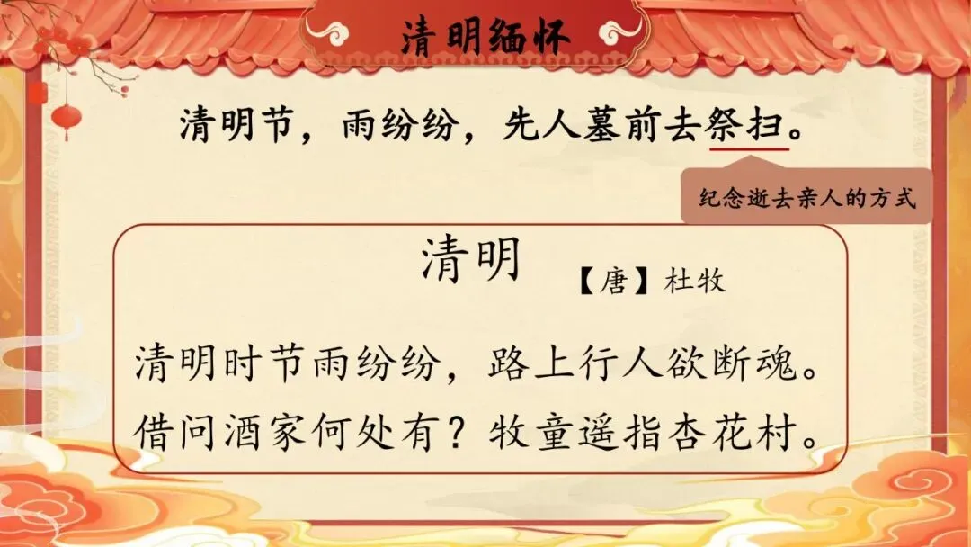 朗读指导具体:针对不同节日的情感基调,指导学生用不同语气朗读——春节、元宵节用欢快语调,清明节用低沉语气读出缅怀之情,层次分明,效果良好。