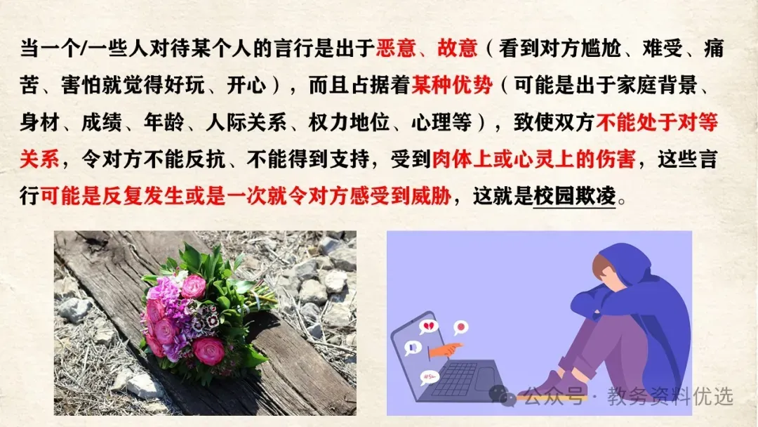 主题班会ppt课件:拒绝欺凌.预防校园欺凌反对校园欺凌.含教案、视频