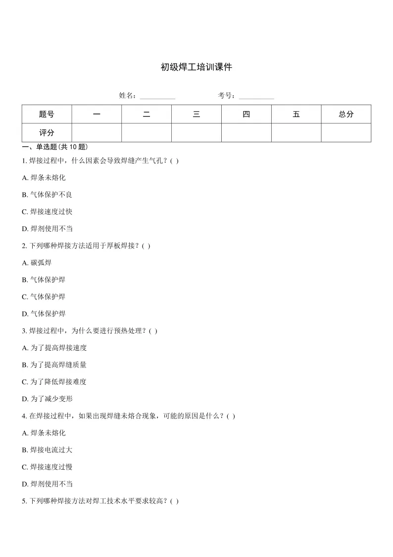 本初级焊工培训课件面向零基础及入门级焊接从业人员,系统讲解焊接基础知识、常用焊接设备与工具、焊接材料选用、基本操作工艺、焊接质量控制及安全防护规范等核心内容。课件结合理论讲解与实操要点,注重实用性与规范性,旨在帮助学员快速掌握初级焊接技能,树立安全作业意识,满足岗位基本上岗要求,适用于企业岗前培训、职业技能入门学习及考核辅导使用。