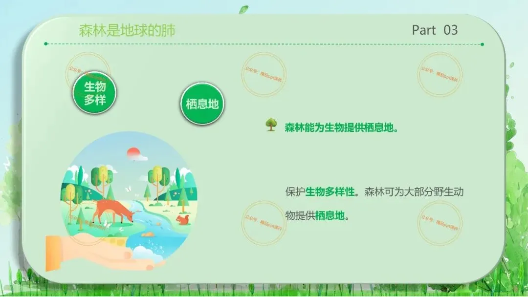 2、本公众号成立的初衷是为广大ppt使用者提升工作效率,所发布的课件资源仅供学习交流禁止用于商业用途,有偿所得用来维系公众号运营所支出的人工成本,性质为买家友情赞助后获取的信息差而非售卖资源的费用。同意此声明后即可下载本期2026年3月21世界森林日保护森林主题班会ppt课件。如有侵犯您的权利,请联系小沐老师。