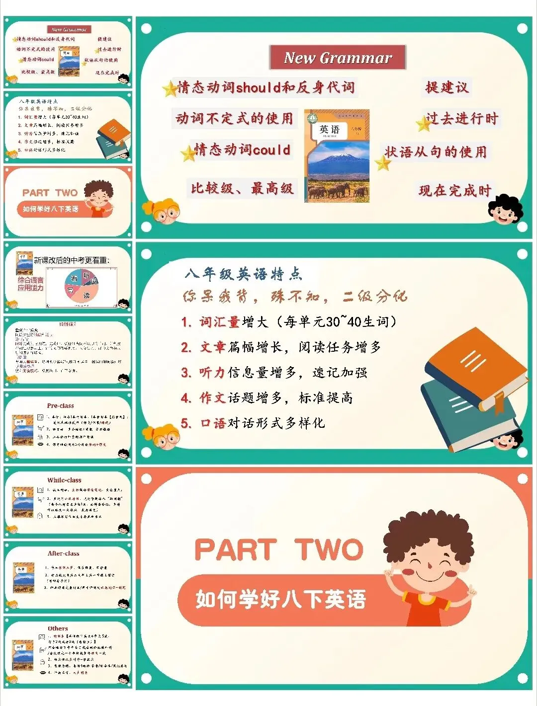 ✅学科规划清晰:八下8个单元话题+语法考点,对接新课改中考方向,让家长知道孩子学什么、考什么。