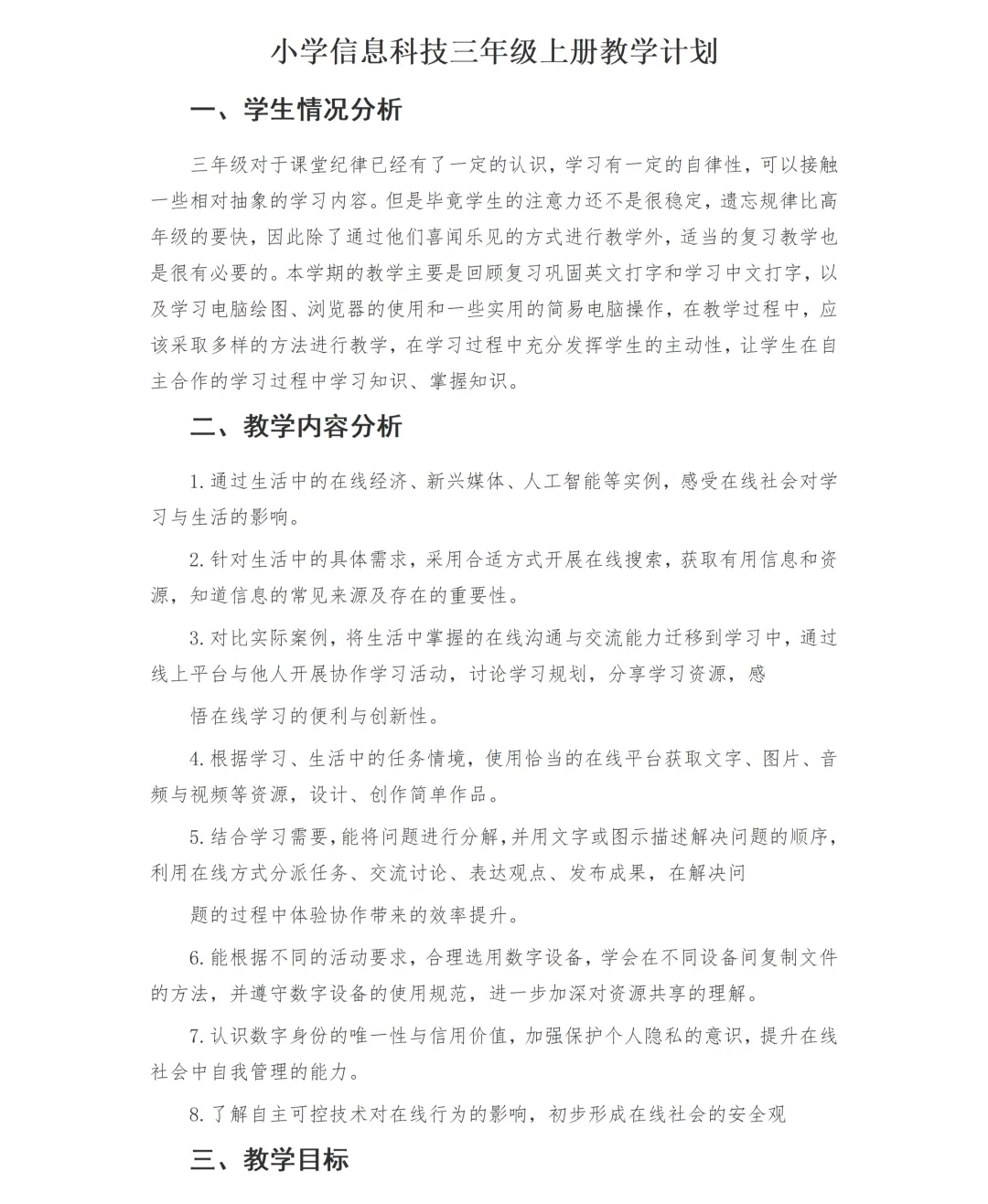 当前位置:首页>教案>2026人教版《信息科技》三年级上册教案+课件+教学计划