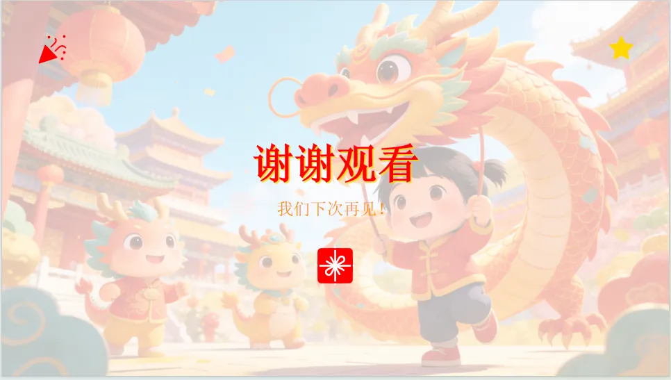 1.总结回顾:播放 PPT 第 18 页,教师带领幼儿回顾今天所学的内容:“今天我们知道了二月二是龙抬头的日子,了解了龙抬头的传说和习俗,还玩了有趣的游戏,学了儿歌。”