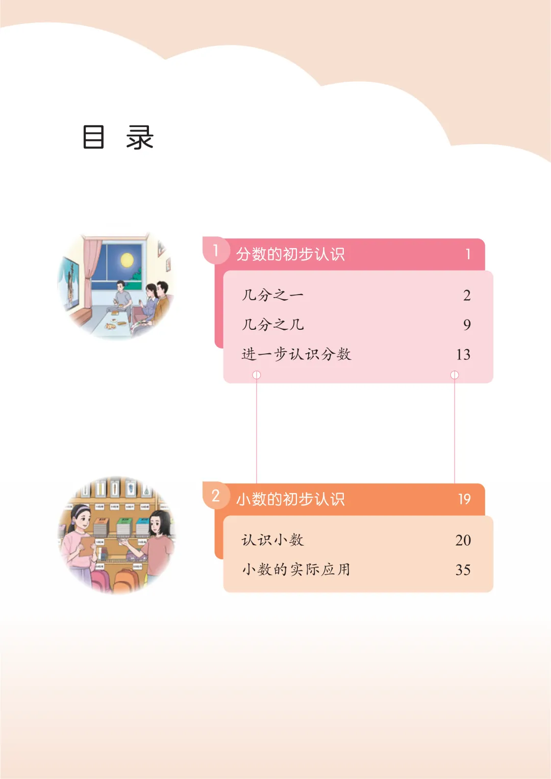 分数的初步认识:从“几分之一” 到 “几分之几”,再到 “进一步认识分数”,逐步拓展分数概念,重点培养学生对 “平均分” 的理解和分数的读写、大小比较能力。