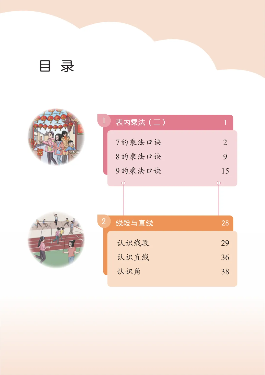 第一单元表内乘法(二) | 7、8、9 的乘法口诀;口诀的应用(解决生活计数问题) | 掌握7-9 的乘法口诀,能准确背诵和计算 | 理解口诀推导过程,灵活运用口诀解决实际问题 |