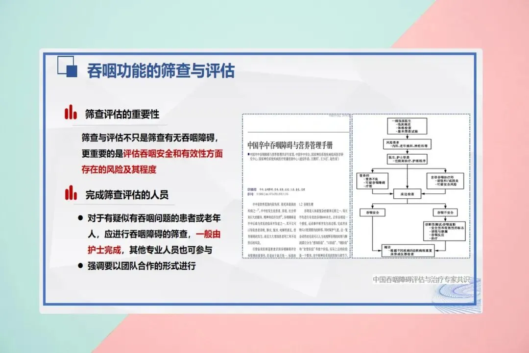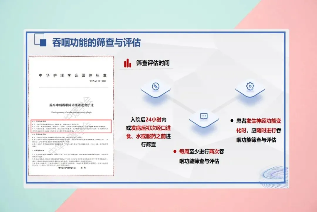 护士通常会用改良洼田饮水试验来筛查:让患者先喝1毫升、3毫升、5毫升水,没问题再喝30毫升,观察有没有呛咳、声音变哑、血氧下降。如果出现异常,说明进食有风险,需要进一步做容积-黏度测试,判断适合什么稠度的食物。