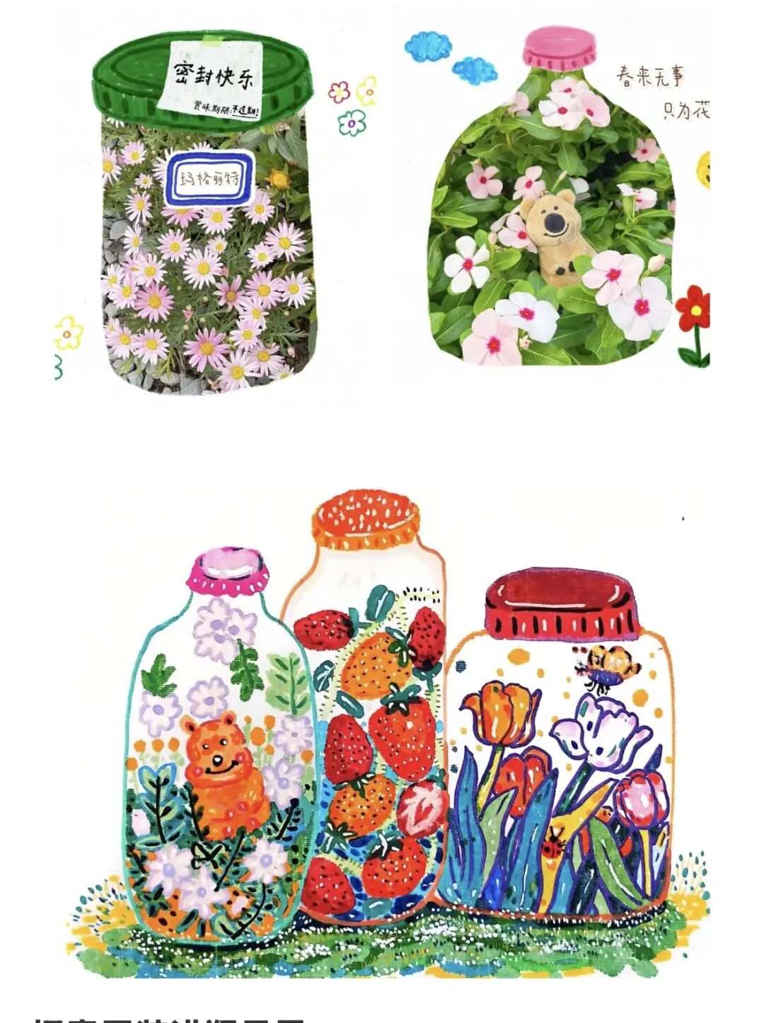 ◦ 瓶外场景可以画自己喜欢的活动,大胆想象。
