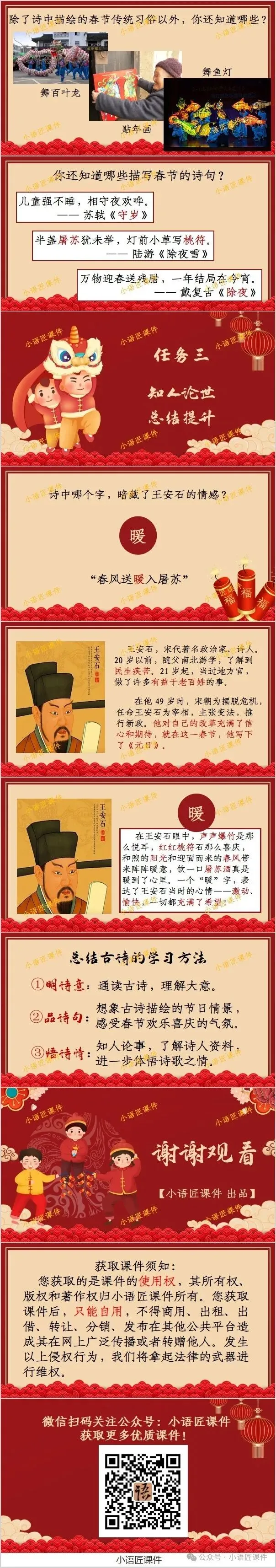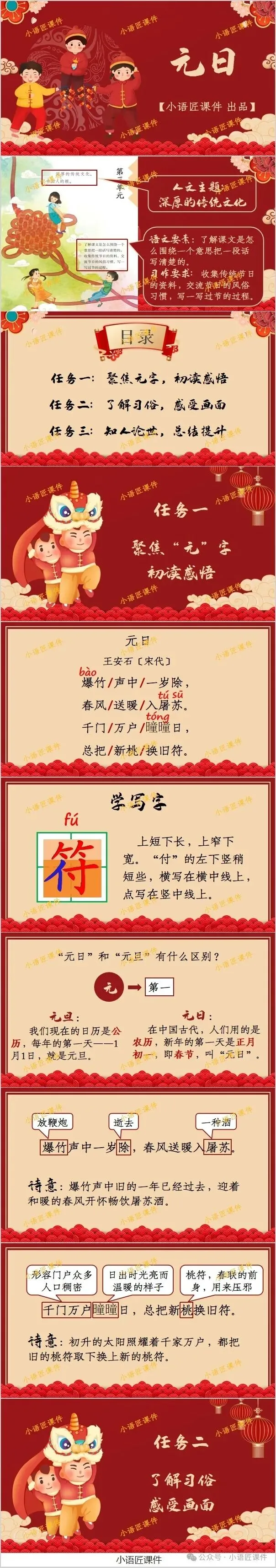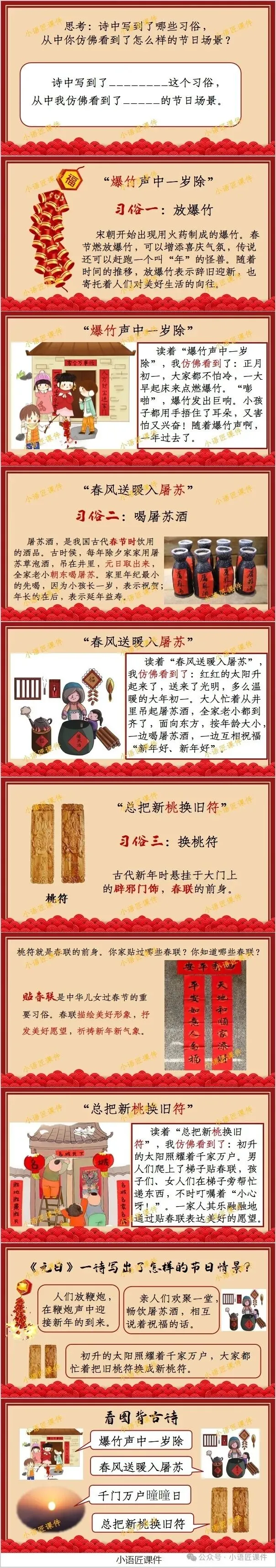 大家好,我是小语匠课件!今天给大家分享三年级下册《元日》古诗三首的独家课件。