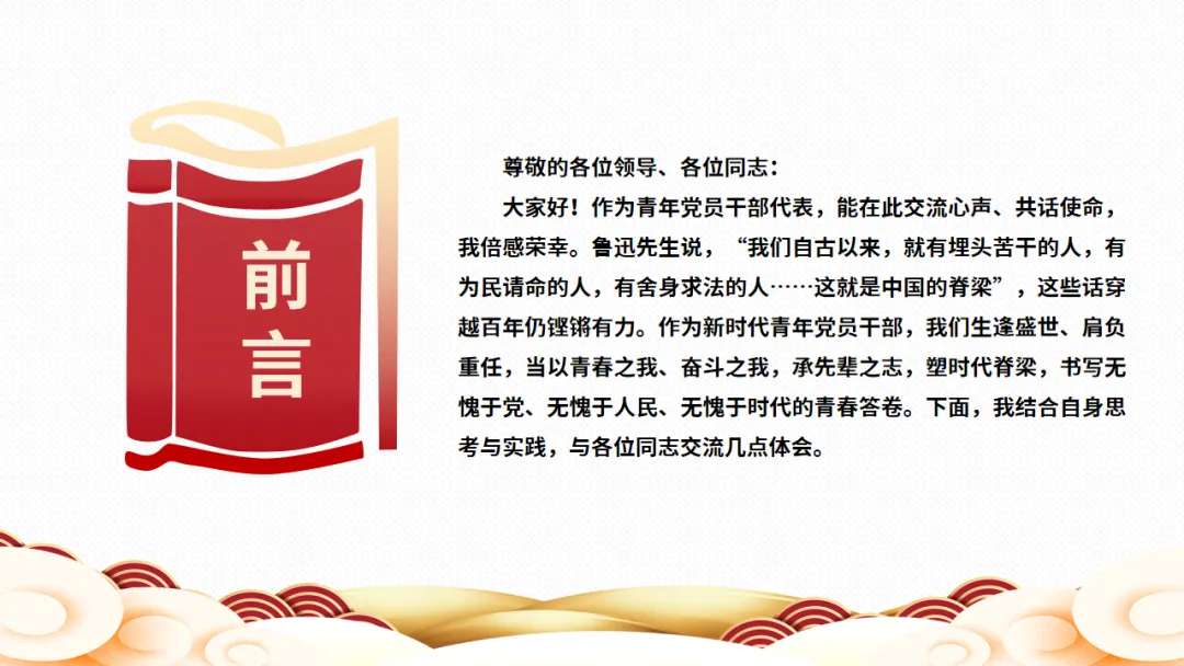 >青年党员干部交流发言课件PPT:吾辈青年 挺脊担当