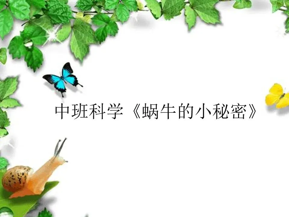 重点难点:幼儿能自主探索发现蜗牛身体的各个组成部分,了解蜗牛的基本特征。