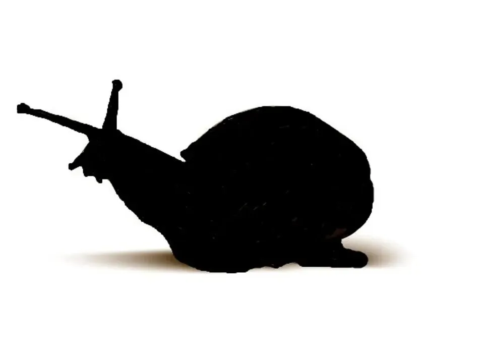 (设计意图:出示蜗牛黑色轮廓图,幼儿自由猜想,帮助幼儿唤醒经验,知道蜗牛的基本外形。)