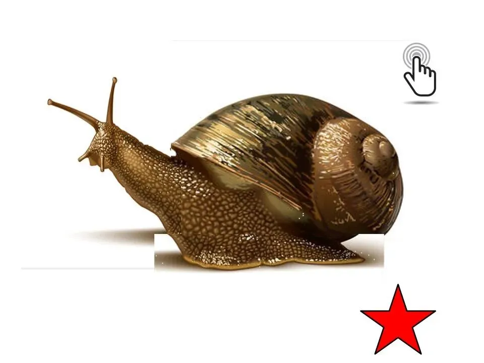 师:淘气的蜗牛要和我们玩一个蜗牛拼图的游戏,它分成了5个小块,分别藏在不同的地方,我们一起点开红色小蜗牛,点点小手图标去拼一拼吧。拼好的小朋友可以点一点五角星奖励给自己哦。哇!一只好大的蜗牛呀。