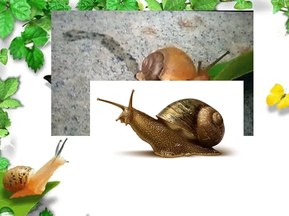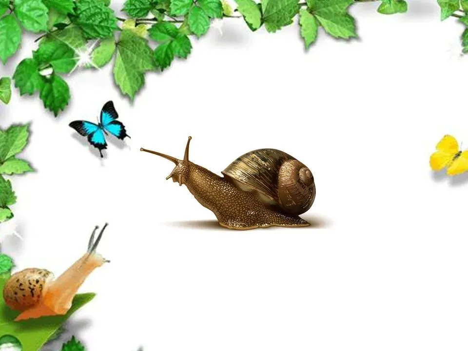1.引导幼儿观察蜗牛的外形特征,了解蜗牛的爬行方式。