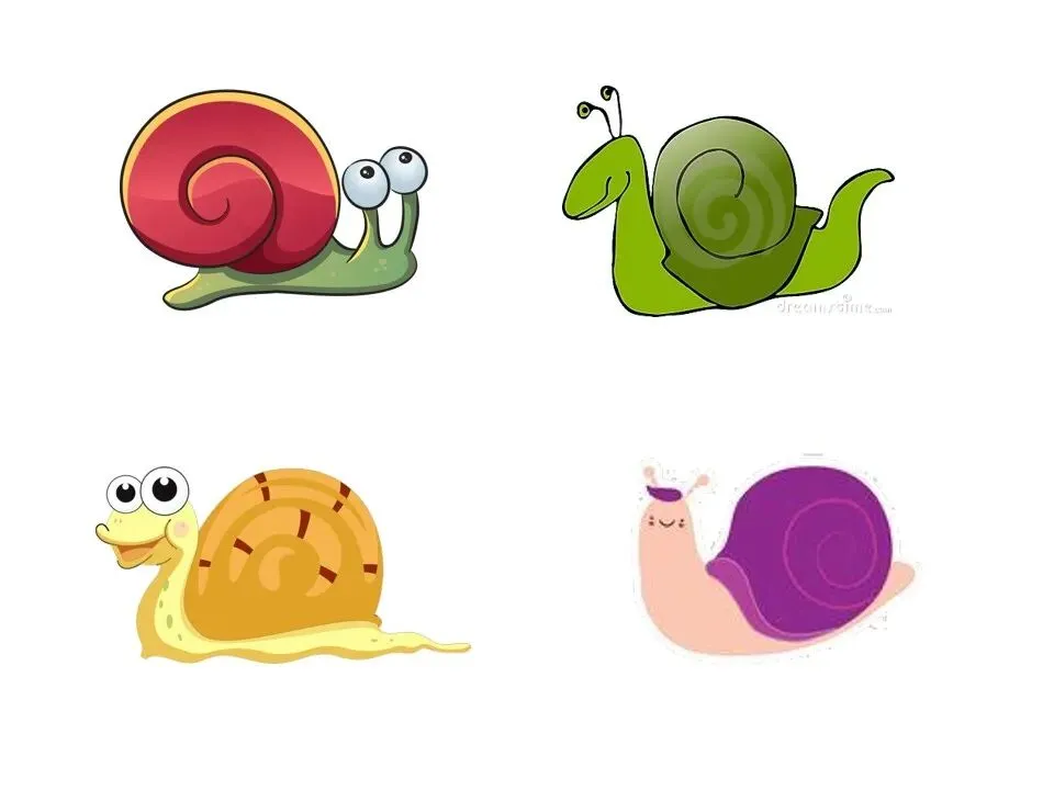 (让幼儿自由讲述,发现蜗牛的基本特征和组成部分。)