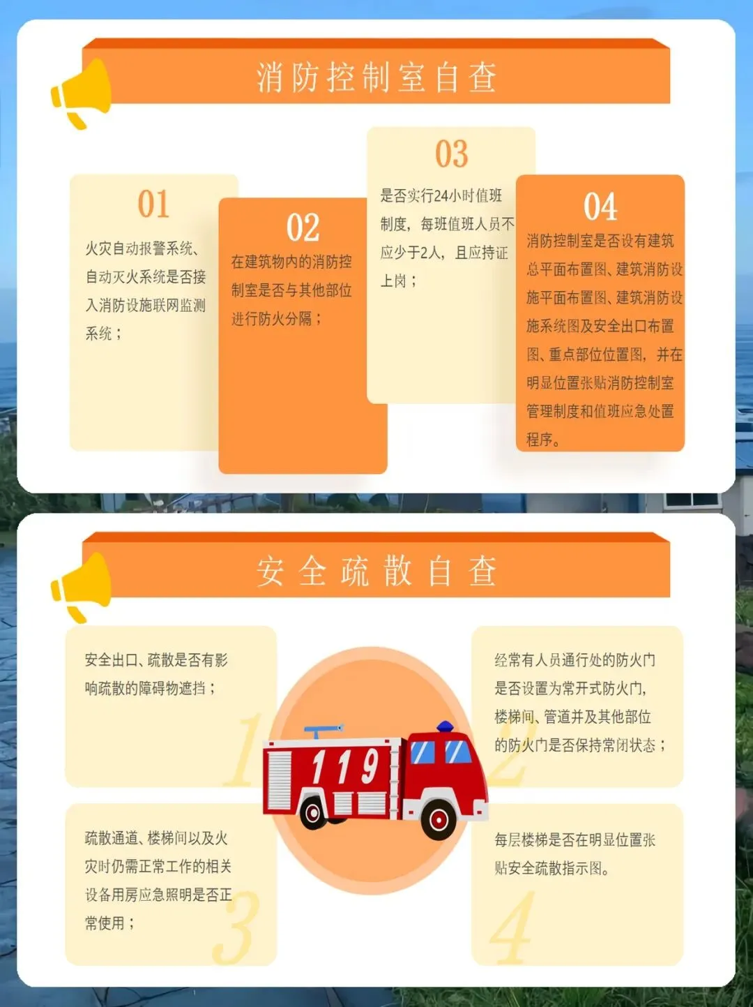 预防火灾,首先要学会发现问题。我们每一位员工,都要养成每天上班前、下班后对本科室区域进行防火检查的好习惯。具体来说,自查工作主要包含以下几个方面: