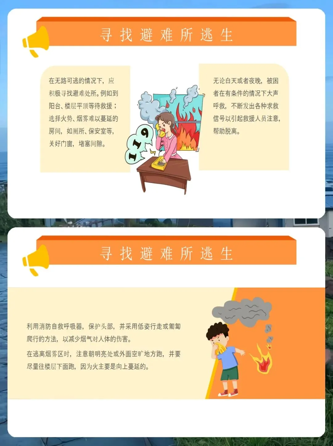 如果实在无路可逃,我们要学会寻找避难所。比如阳台、楼层平顶,或者火势、烟雾难以蔓延的房间,如厕所、保安室。关好门窗,堵塞间隙,大声呼救。同时,我们要利用消防自救呼吸器保护头部,采用低姿行走或匍匐爬行,因为烟气是向上蔓延的,我们要尽量往楼层下面跑,朝明亮处或空旷地跑。
