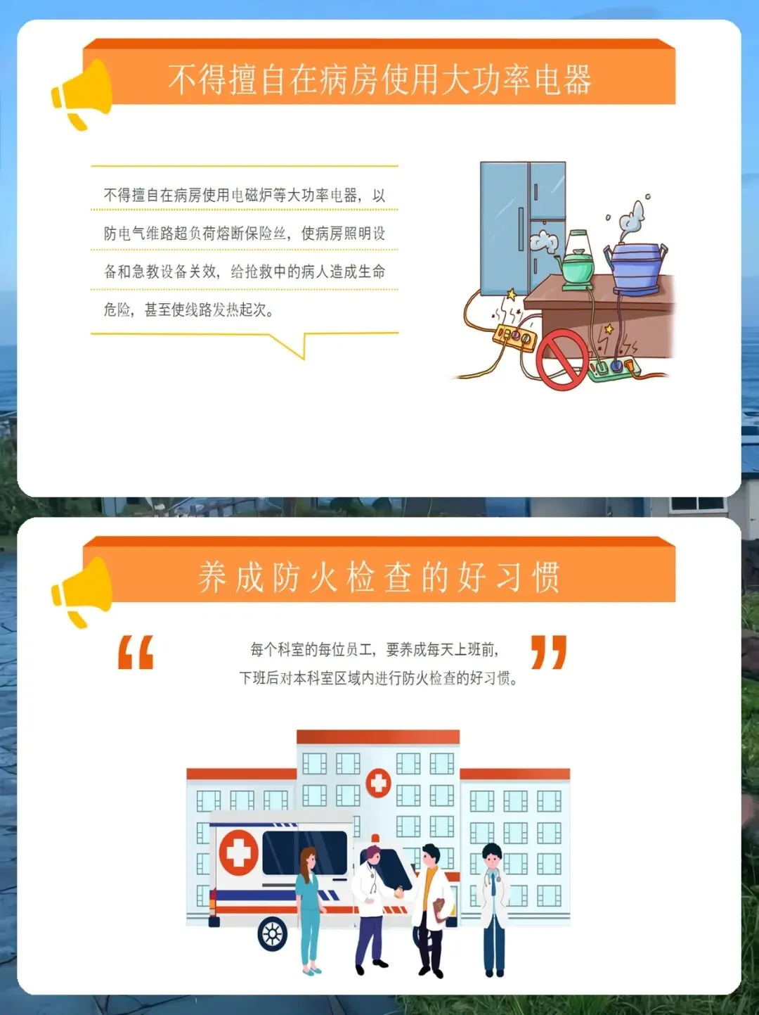 第二,严查用电设备。我们医院的仪器检查和治疗设备多,用电量大、负荷高。我们要安排专人定期检查,严禁在病房内擅自使用电磁炉等大功率电器,防止线路超负荷引发火灾。