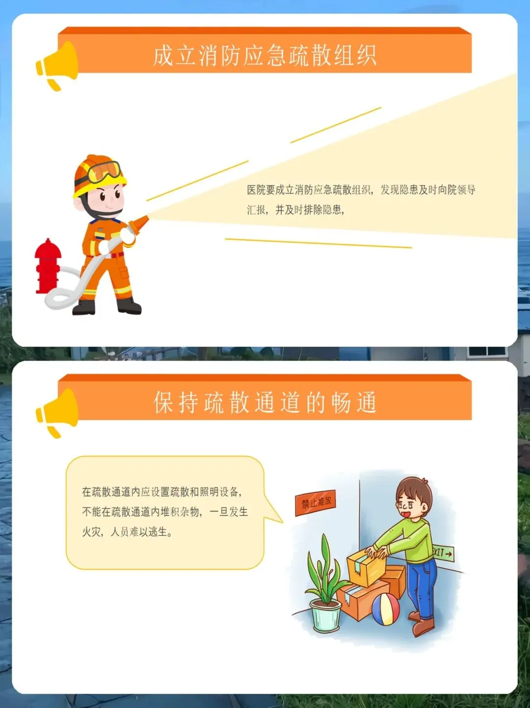 最后,我想再次强调,我们医院必须成立消防应急疏散组织,保持疏散通道畅通无阻,并在各区域的明显位置张贴安全疏散指示图。每一个科室、每一个岗位,都要明确消防安全职责。