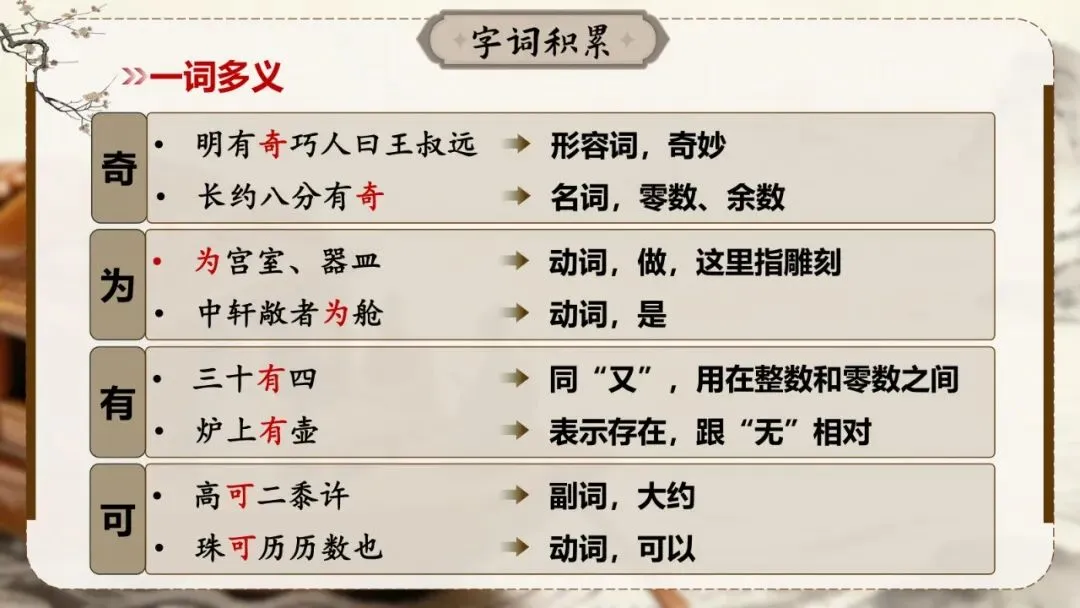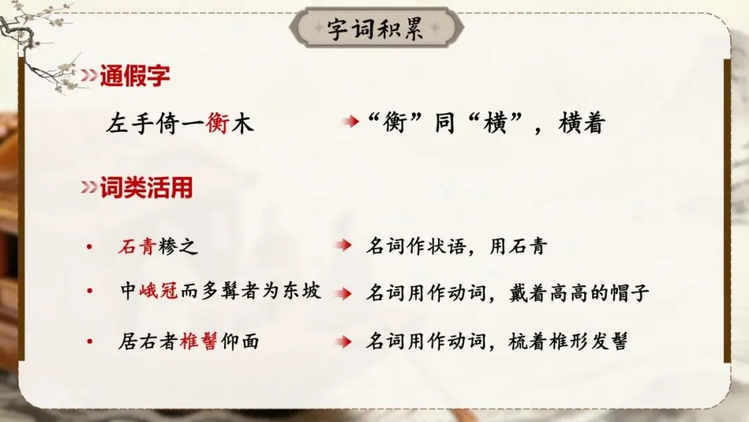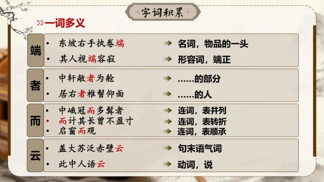 语言运用:诵读课文,积累重点文言词汇,掌握一词多义、词类活用等文言现象。